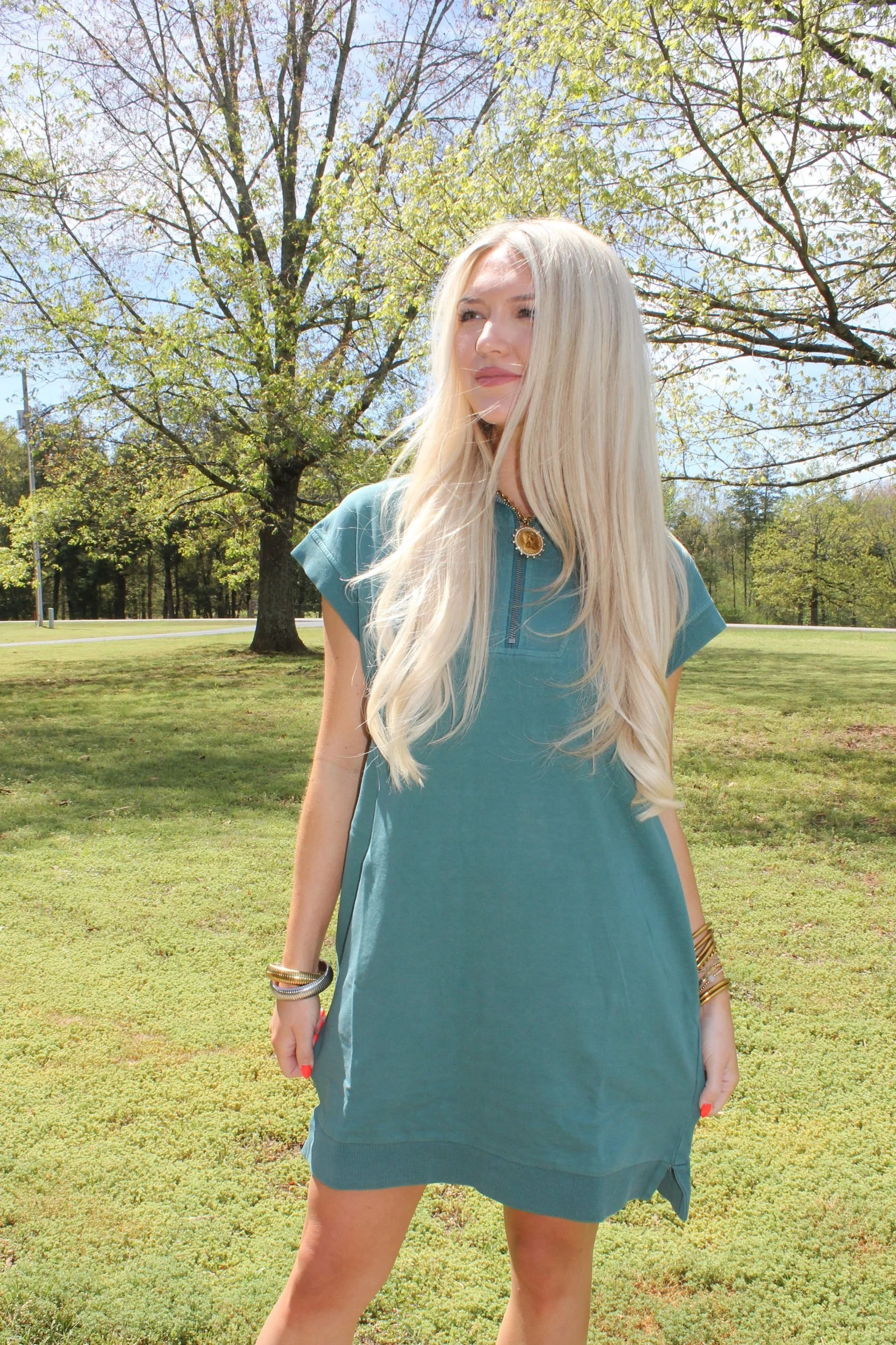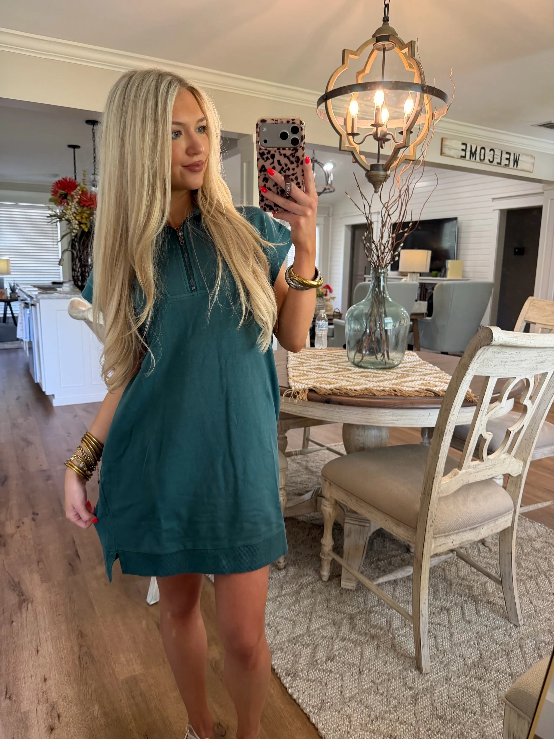 Shop › Mockneck Mini Dress - Dark Teal Image 1 of 3 Image 2 of 3 Image 3 of 3 Mockneck Mini Dress - Dark Teal $32.00 • Good length • Working zipper• True to size• Macie is 5’2 wearing the small Size: Small Medium Large Get notified by email when this product is in stock. Add To Cart Added! • Good length • Working zipper• True to size• Macie is 5’2 wearing the small