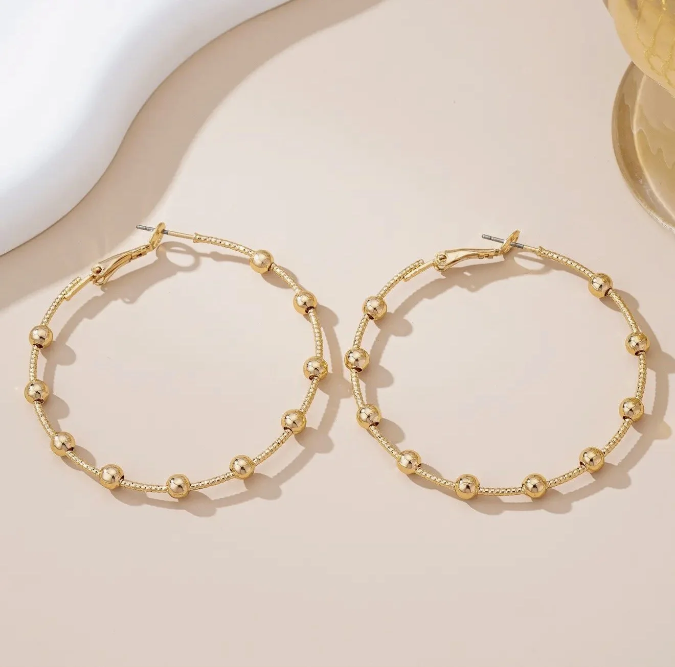 Shop › Beaded Gold Hoops Image 1 of 2 Image 2 of 2 Beaded Gold Hoops $16.00 • Hypoallergenic posts• Lead and nickel compliant Add To Cart Added! • Hypoallergenic posts• Lead and nickel compliant