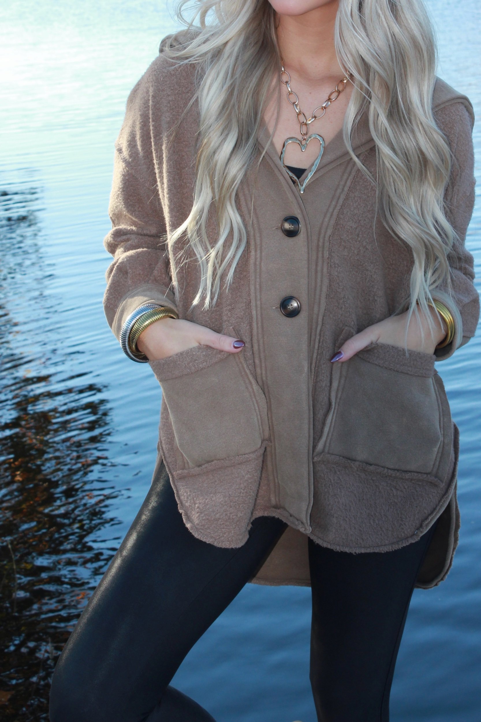 Shop › Hot Chocolate Button Down Sweatshirt Image 1 of 3 Image 2 of 3 Image 3 of 3 Hot Chocolate Button Down Sweatshirt $36.00 • Thick sweatshirt material• Working buttons• Macie is 5’2 wearing a small Size: Small Medium Large Quantity: Add To Cart Added! • Thick sweatshirt material• Working buttons• Macie is 5’2 wearing a small