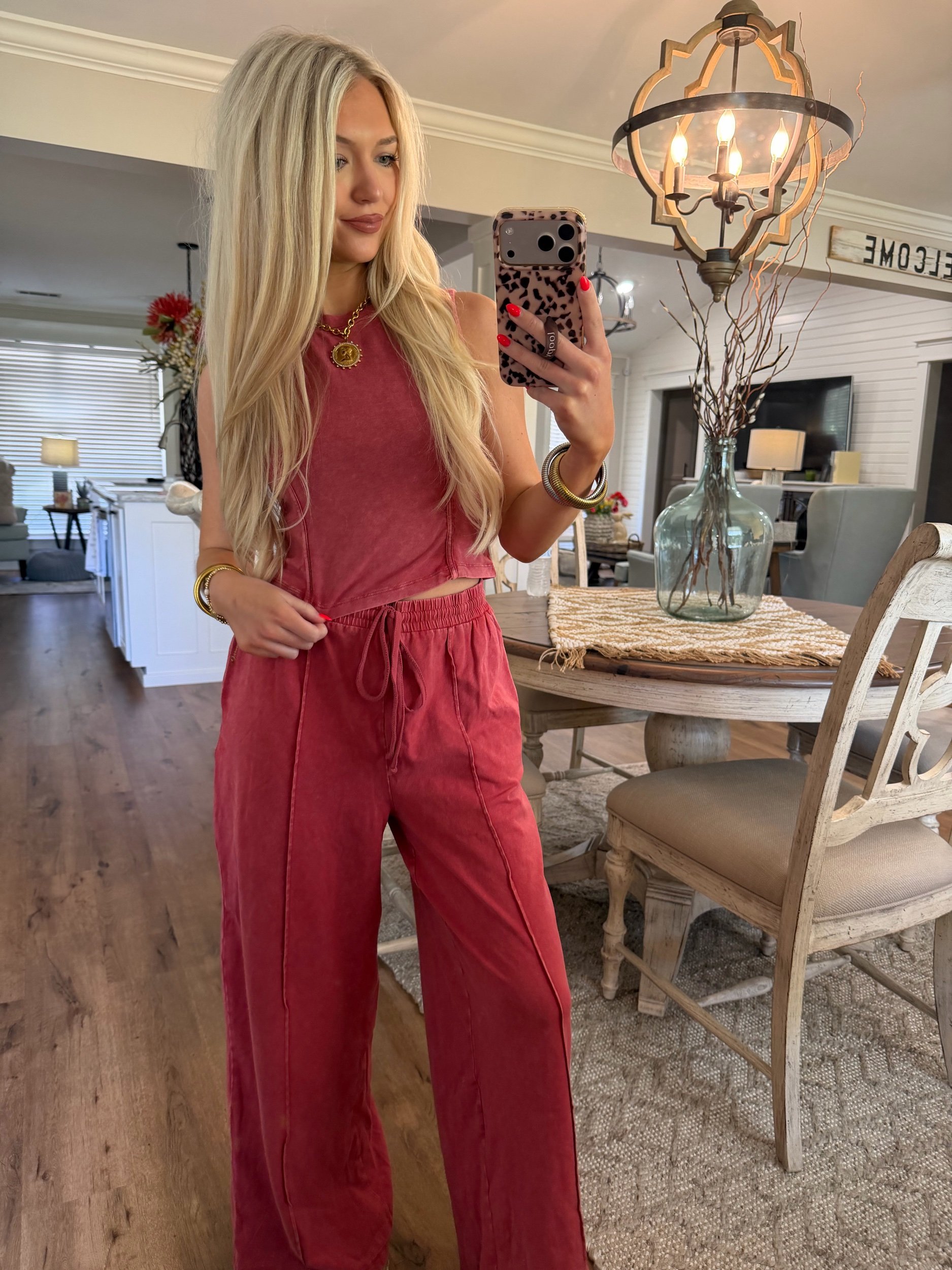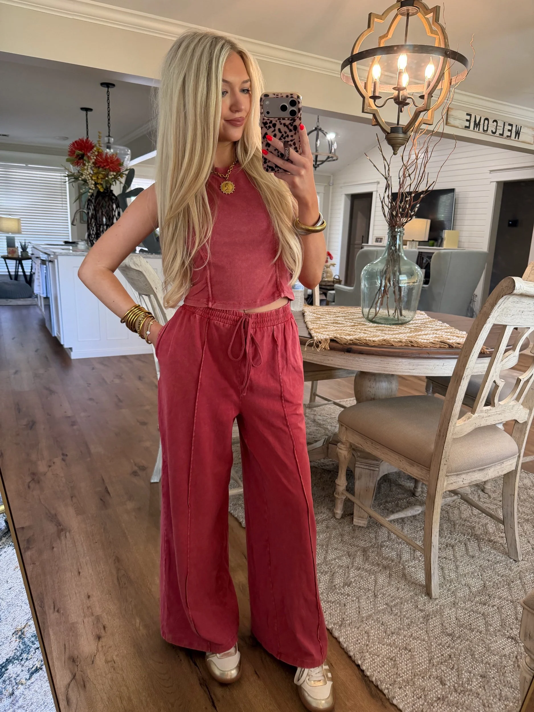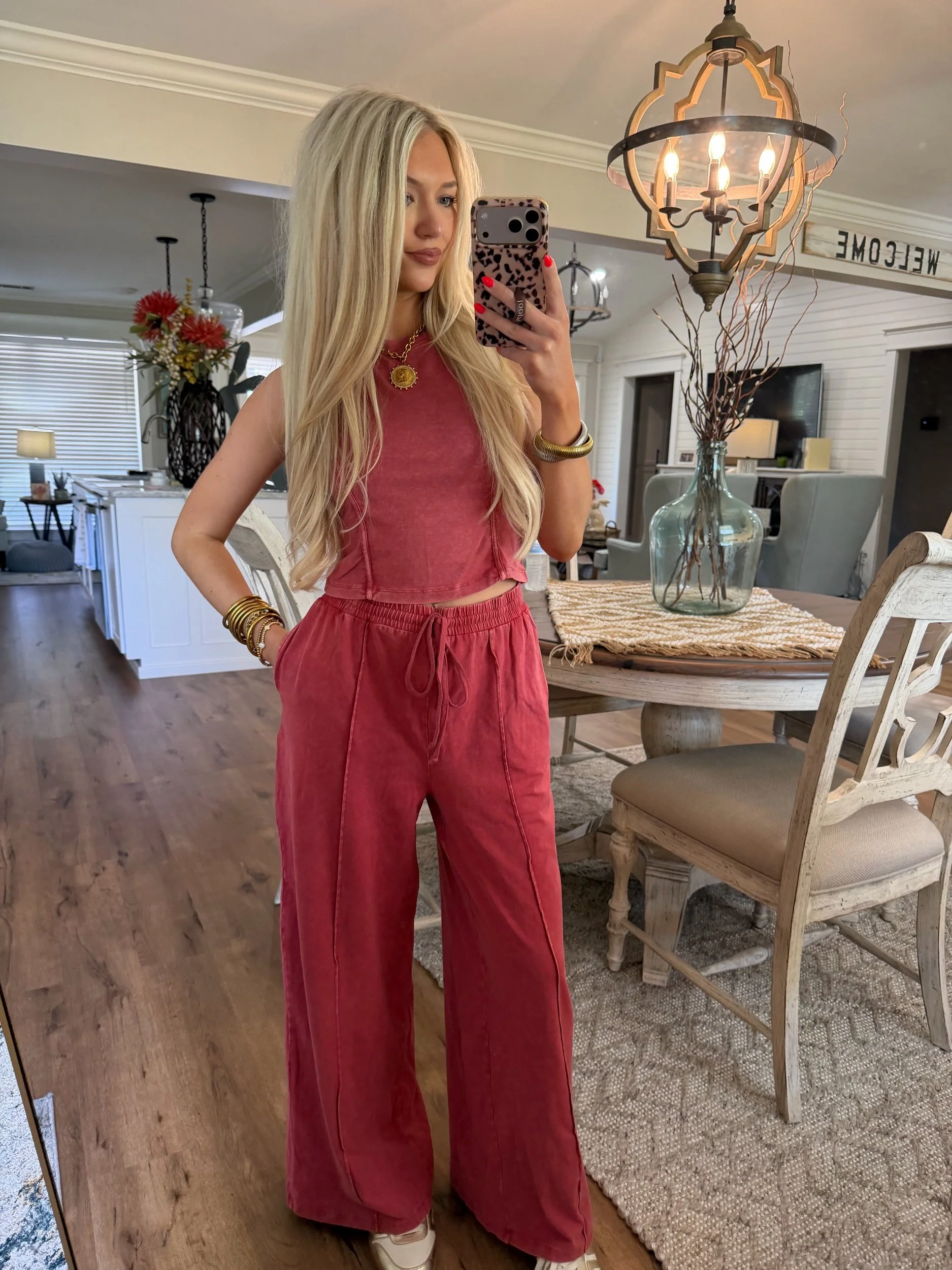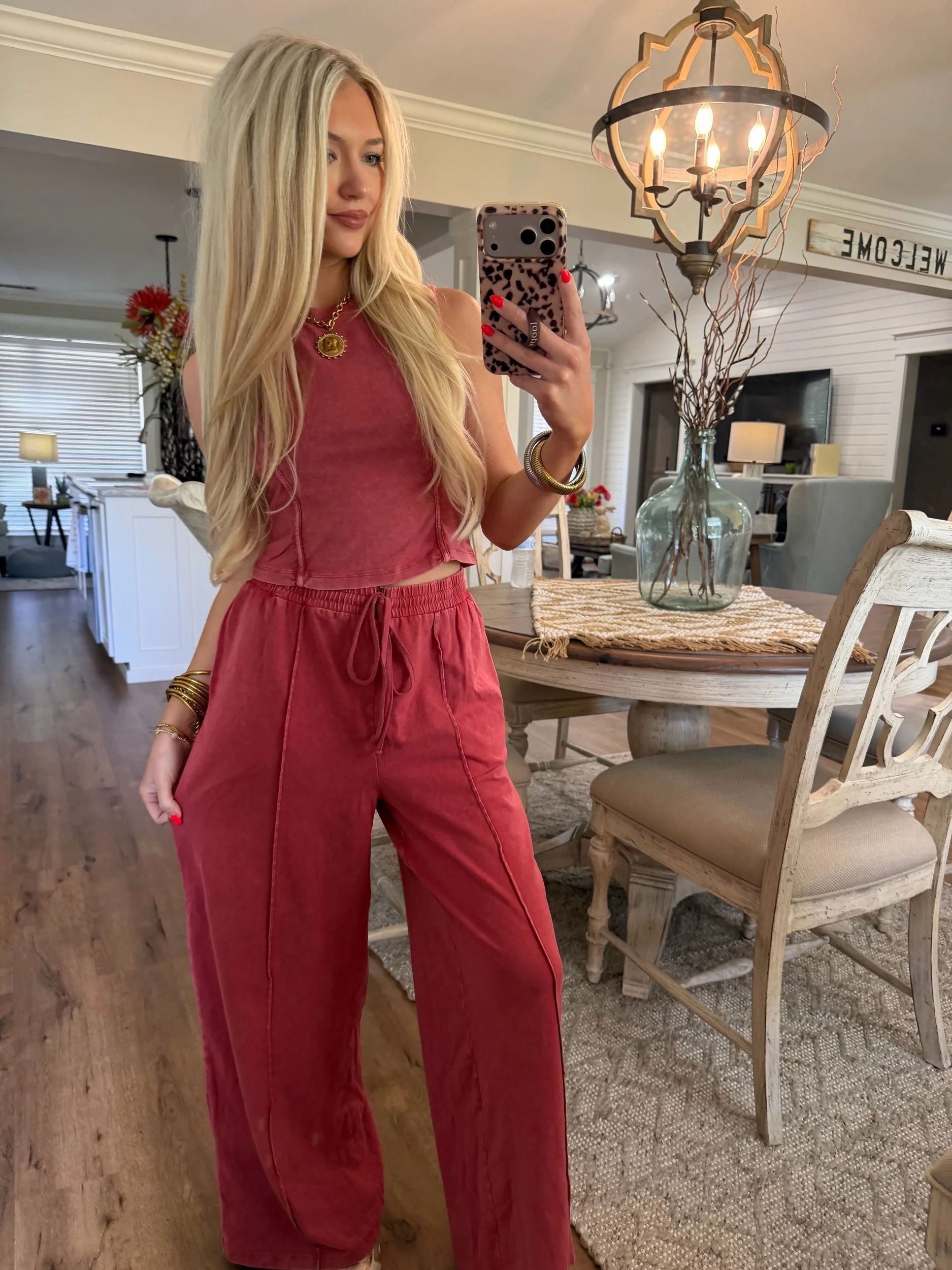 Shop › Mineral Wash Lounge Set - Dark Red Image 1 of 5 Image 2 of 5 Image 3 of 5 Image 4 of 5 Image 5 of 5 Mineral Wash Lounge Set - Dark Red $45.00 • Sold as set• True to size• Drawstring waist• Macie is 5’2 wearing the small Size: Small Medium Large Get notified by email when this product is in stock. Add To Cart Added! • Sold as set• True to size• Drawstring waist• Macie is 5’2 wearing the small