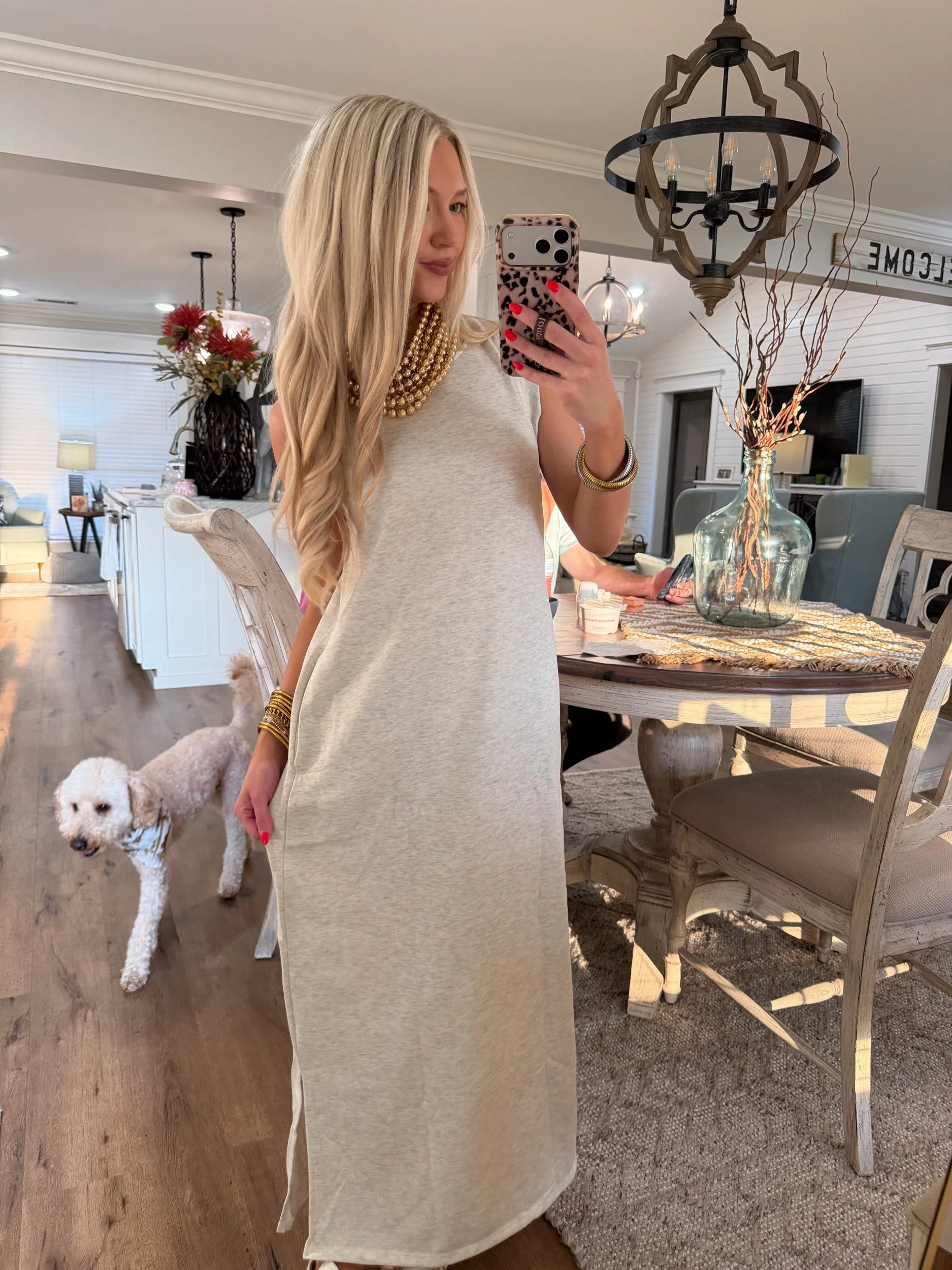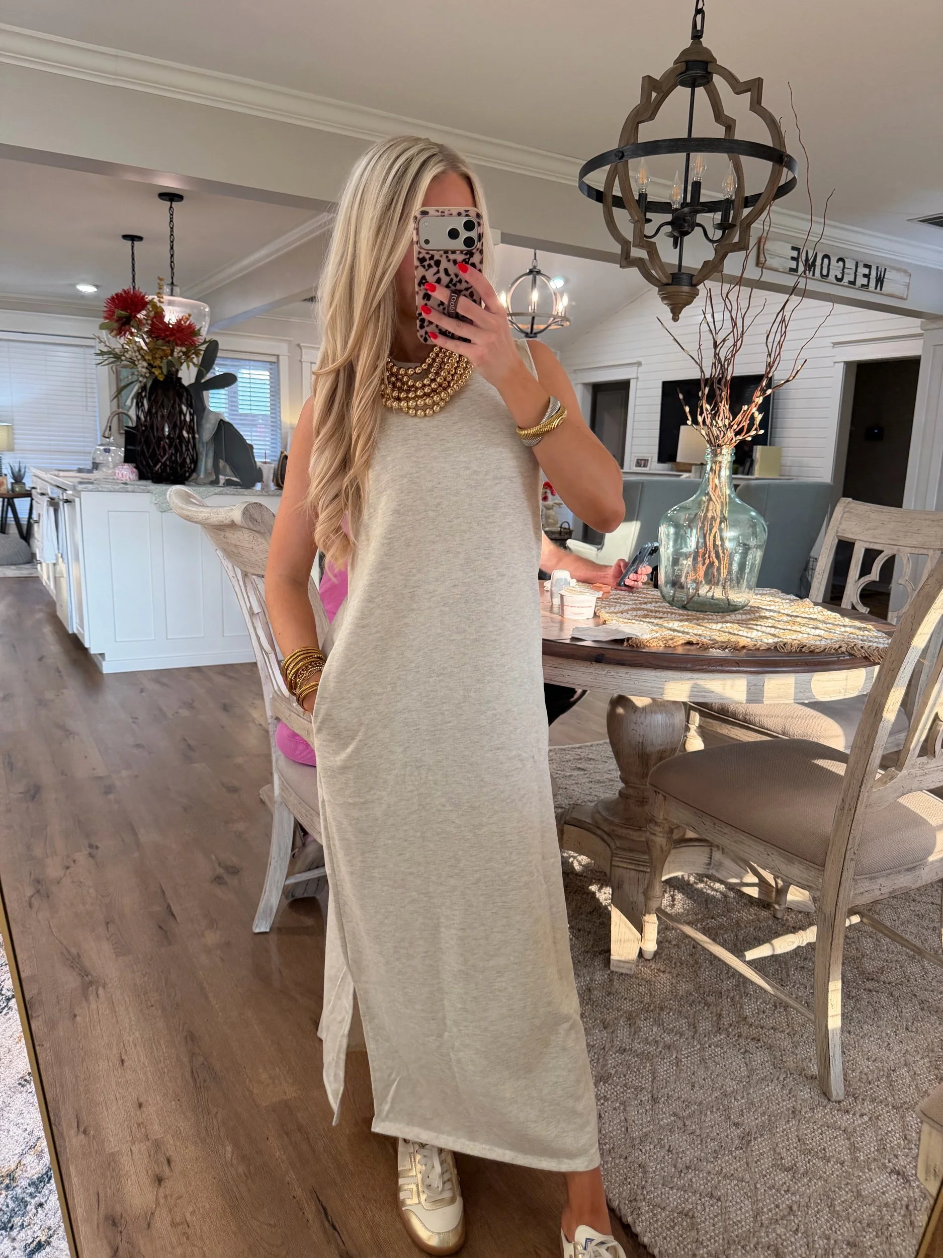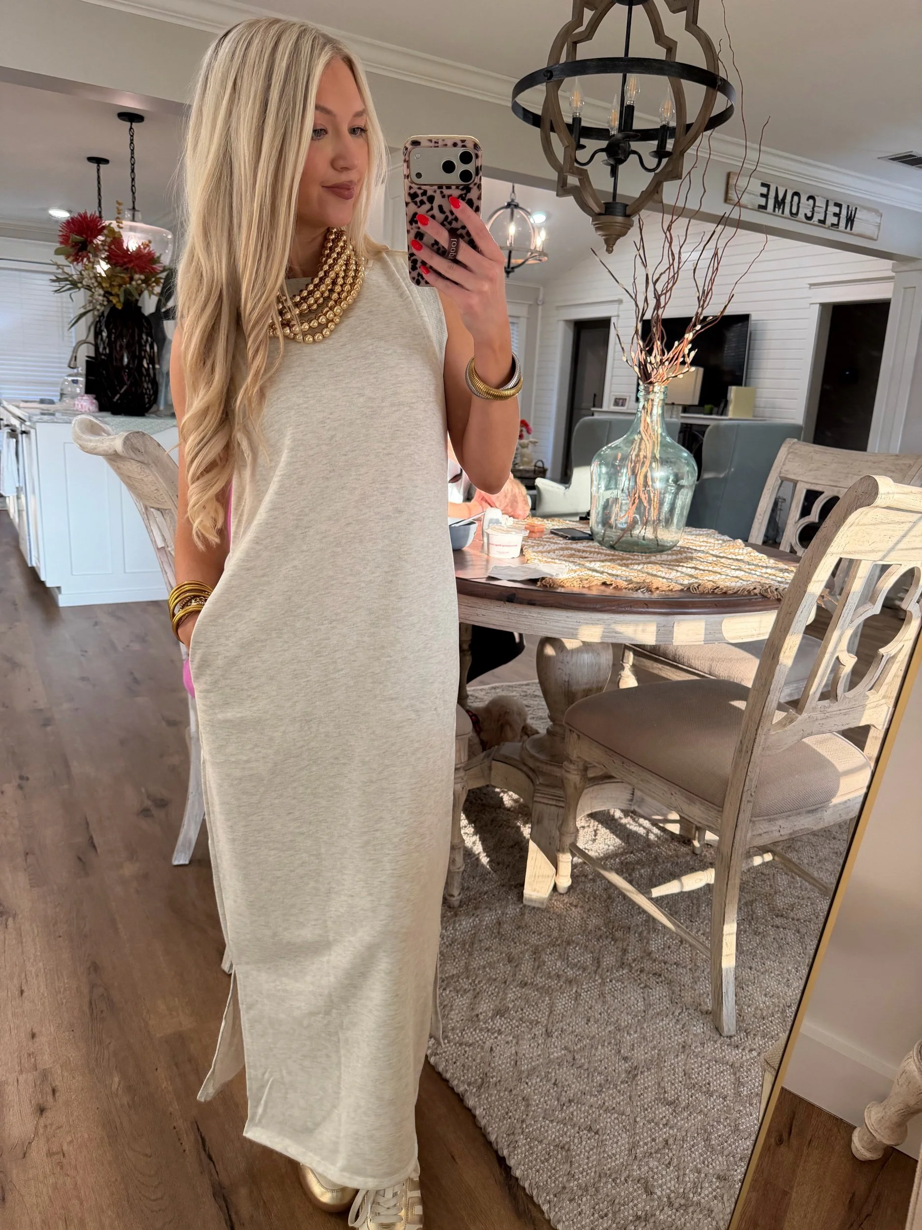 Shop › Casual Maxi Dress - Oatmeal Image 1 of 3 Image 2 of 3 Image 3 of 3 Casual Maxi Dress - Oatmeal $36.00 • Straight fit• True to size• Has pockets • Macie is 5’2 wearing the small Size: Small Medium Large Get notified by email when this product is in stock. Add To Cart Added! • Straight fit• True to size• Has pockets • Macie is 5’2 wearing the small