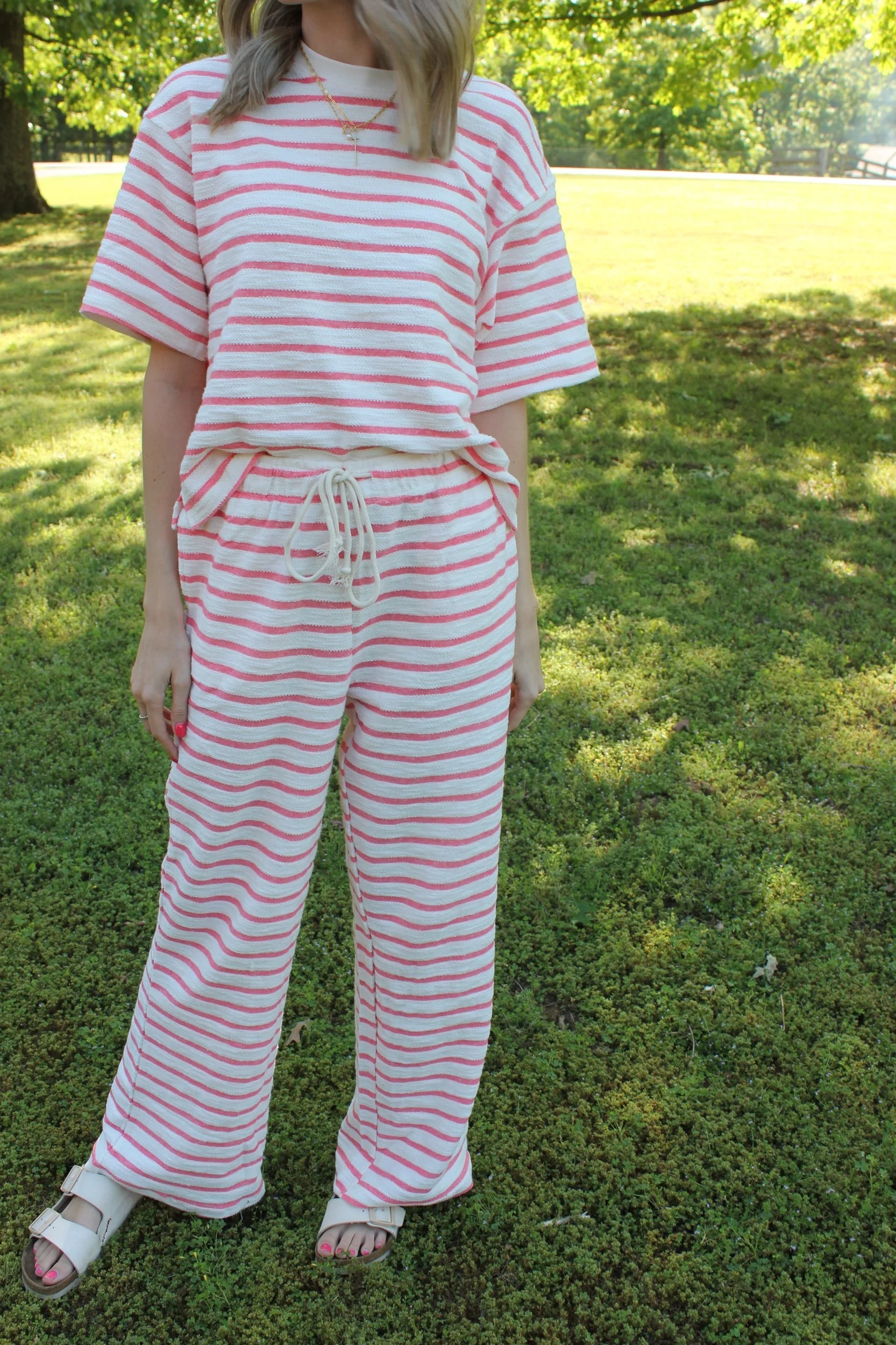 Shop › Terry Striped Lounge Set Image 1 of 4 Image 2 of 4 Image 3 of 4 Image 4 of 4 Terry Striped Lounge Set $56.00 • Sold as set• True to size• Textured material • Hannah is 5’6 wearing the small Size: Small Medium Large Get notified by email when this product is in stock. Add To Cart Added! • Sold as set• True to size• Textured material • Hannah is 5’6 wearing the small