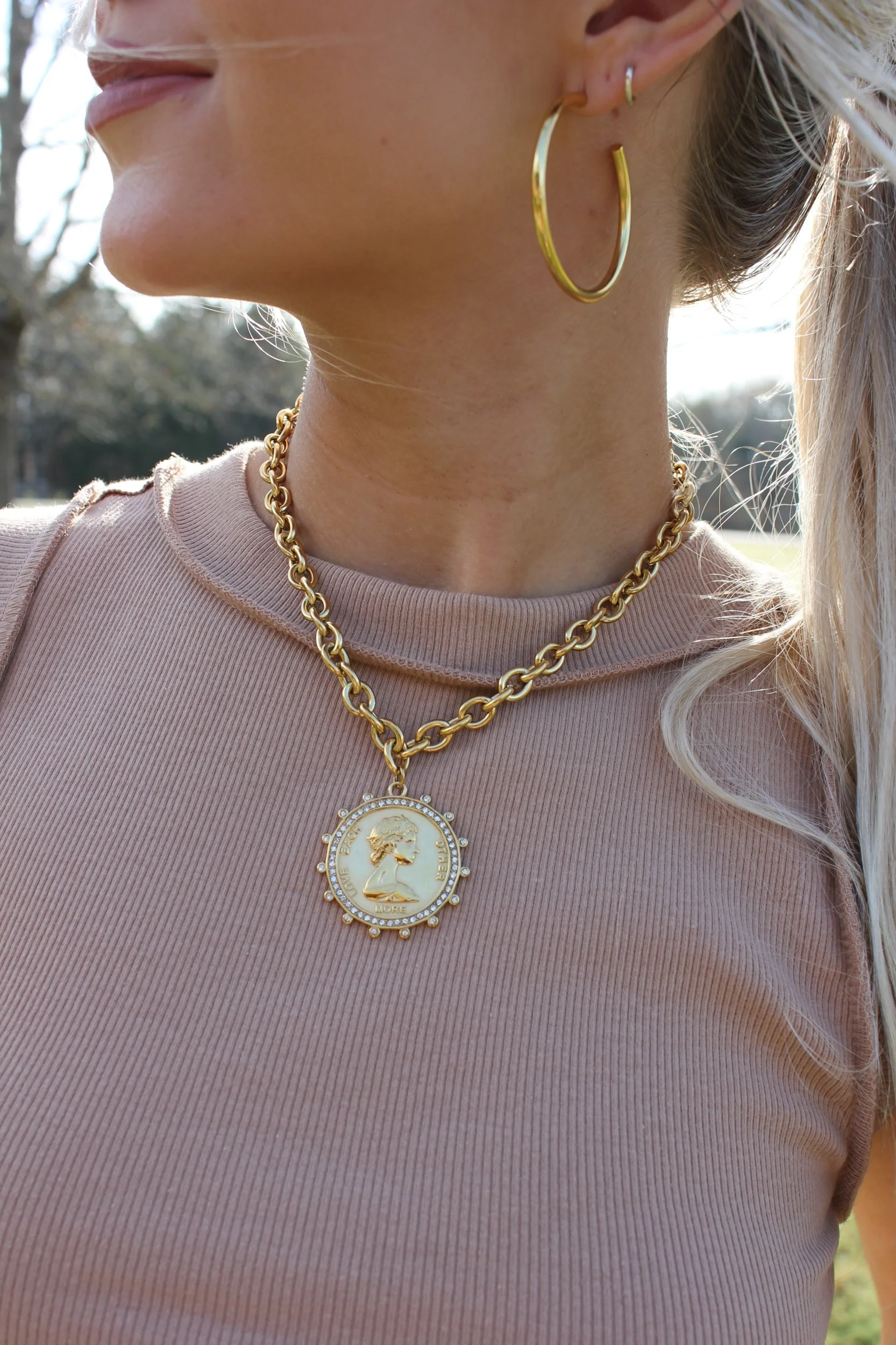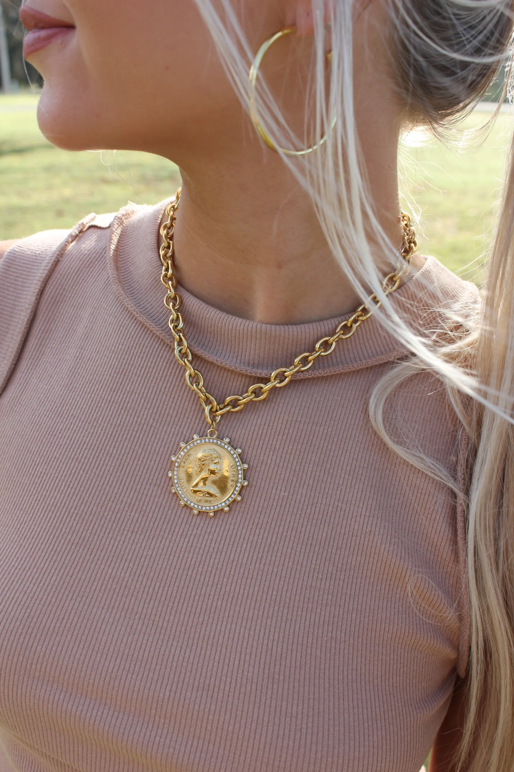 Shop › PREORDER*Coin Pendant Necklace Image 1 of 3 Image 2 of 3 Image 3 of 3 PREORDER*Coin Pendant Necklace $28.00 • Waterproof • Stainless steel• 16-18inch adjustable length• Preorder arrives April 1st Get notified by email when this product is in stock. Add To Cart Added! • Waterproof • Stainless steel• 16-18inch adjustable length• Preorder arrives April 1st