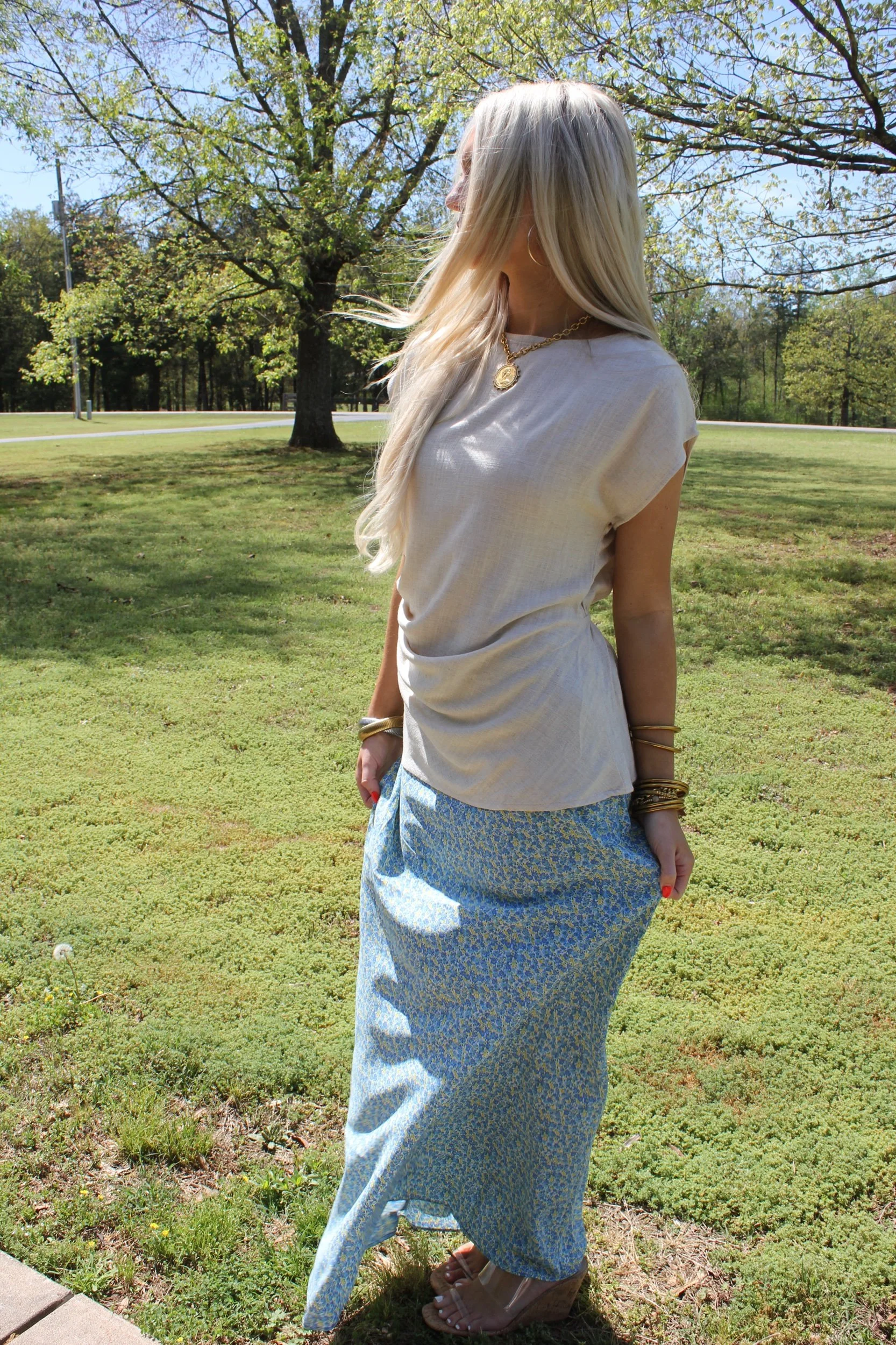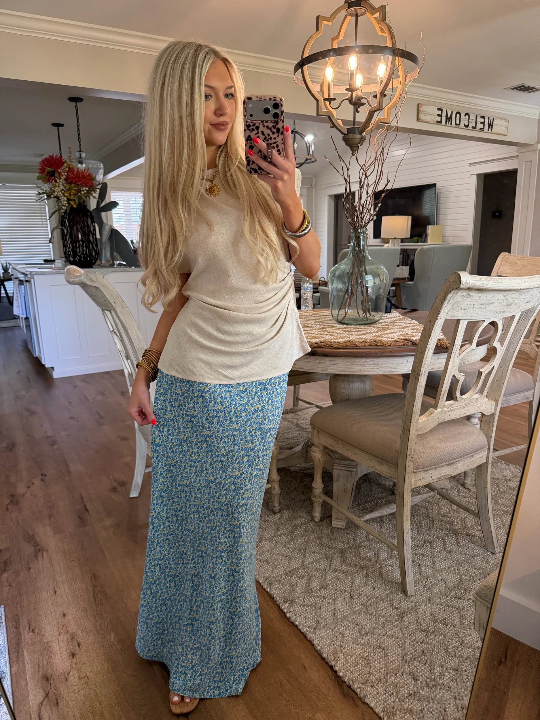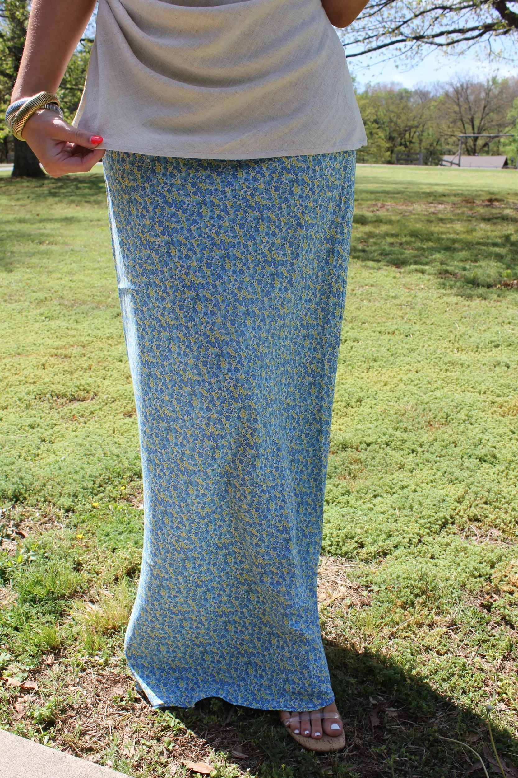 Shop › Floral Satin Midi Skirt - Blue Image 1 of 5 Image 2 of 5 Image 3 of 5 Image 4 of 5 Image 5 of 5 Floral Satin Midi Skirt - Blue $38.00 • Maxi length on short girls• True to size• Macie is 5’2 wearing the small Size: Small Medium Large Get notified by email when this product is in stock. Add To Cart Added! • Maxi length on short girls• True to size• Macie is 5’2 wearing the small