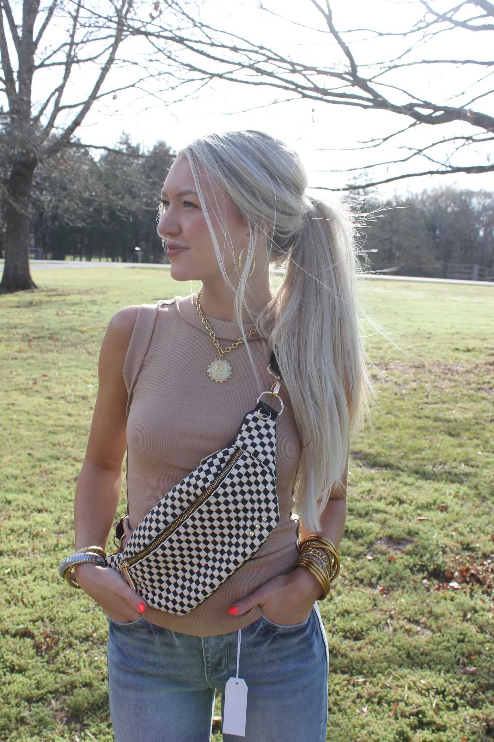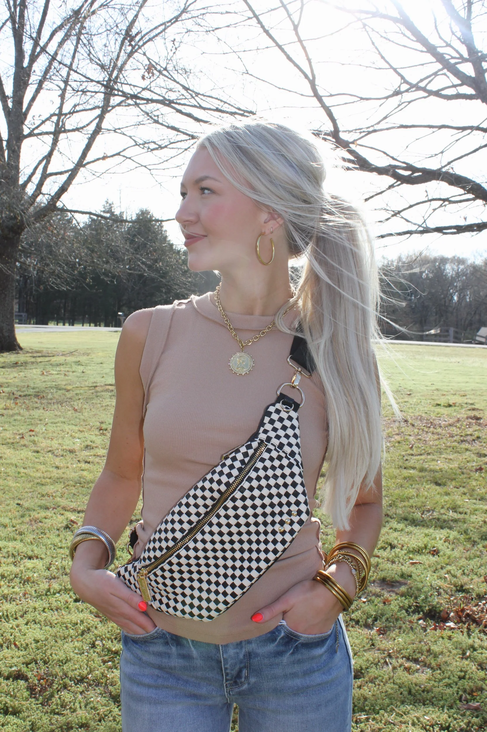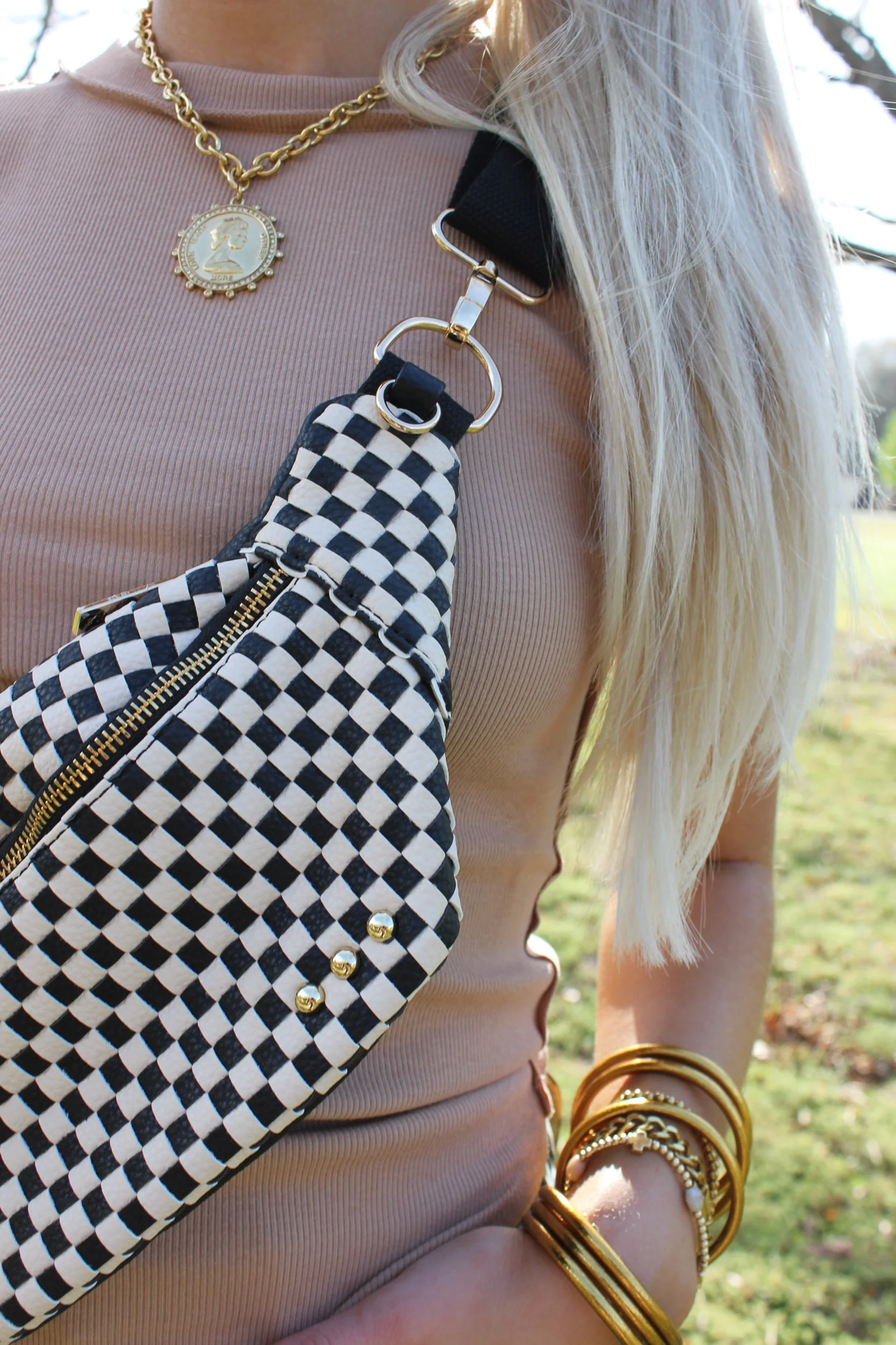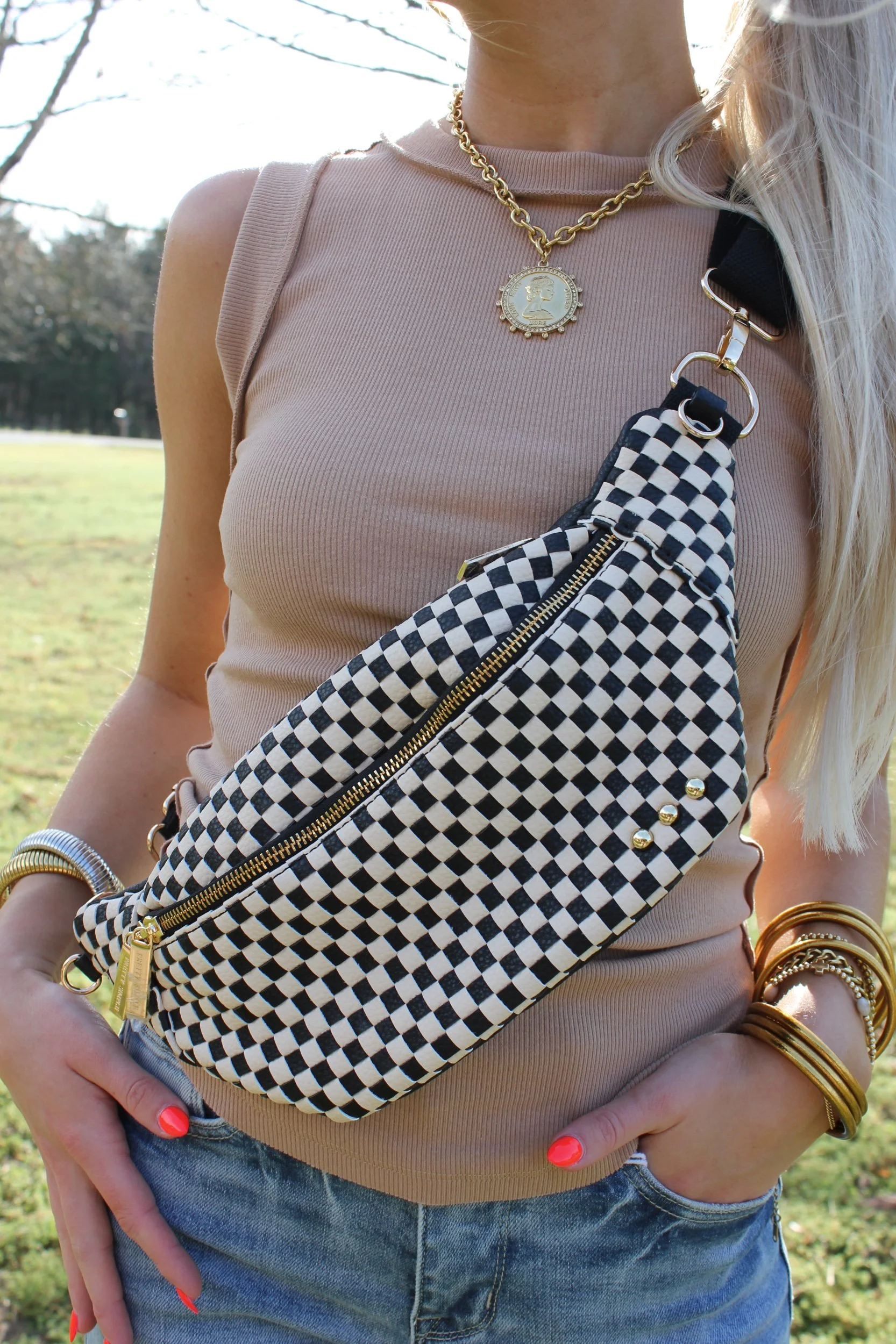 Shop › Sidekick Bum Bag - Black Checkered Image 1 of 4 Image 2 of 4 Image 3 of 4 Image 4 of 4 Sidekick Bum Bag - Black Checkered $54.00 • Multiple organizational pockets • Vegan leather• Adjustable strap Get notified by email when this product is in stock. Add To Cart Added! • Multiple organizational pockets • Vegan leather• Adjustable strap