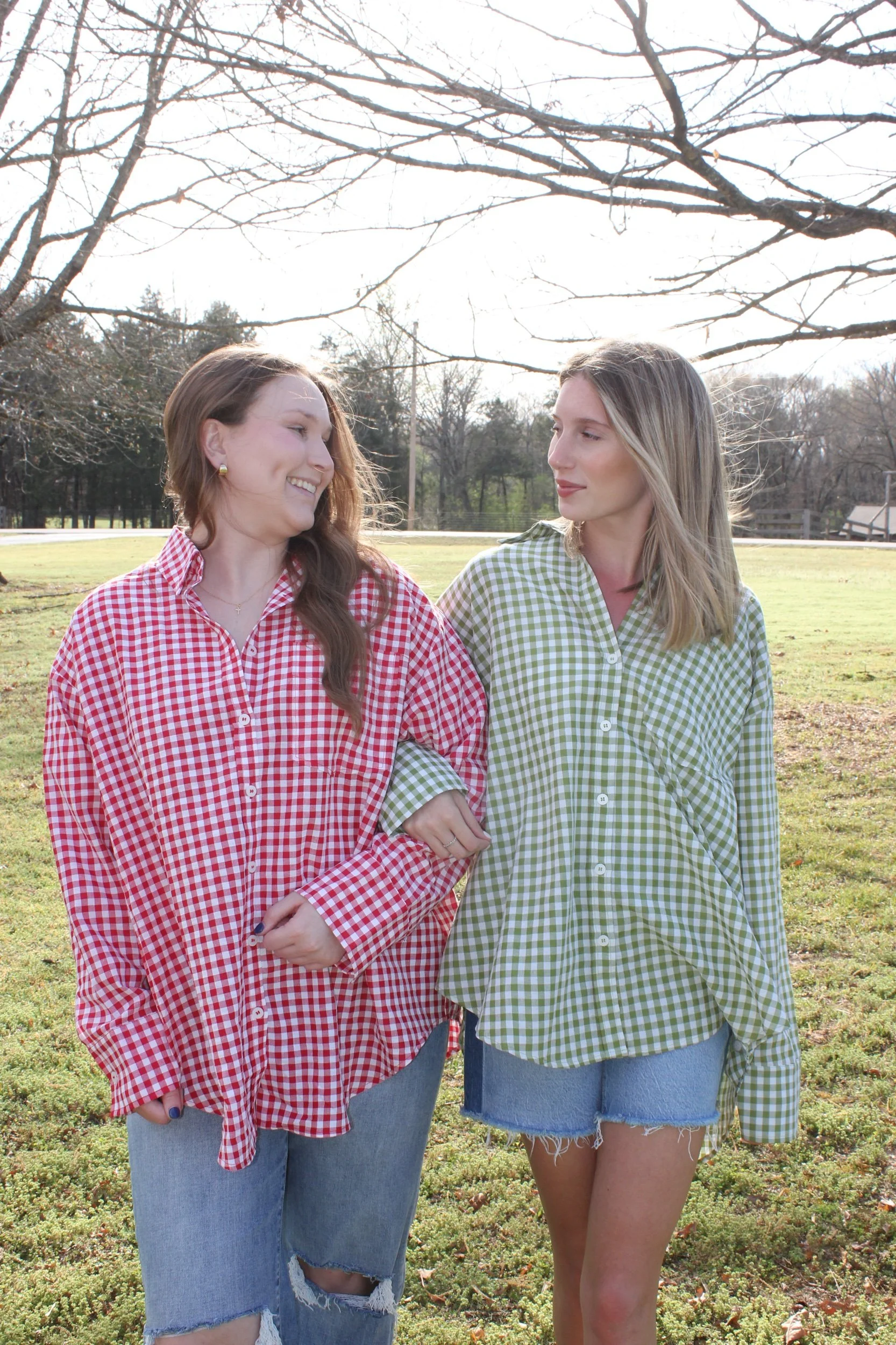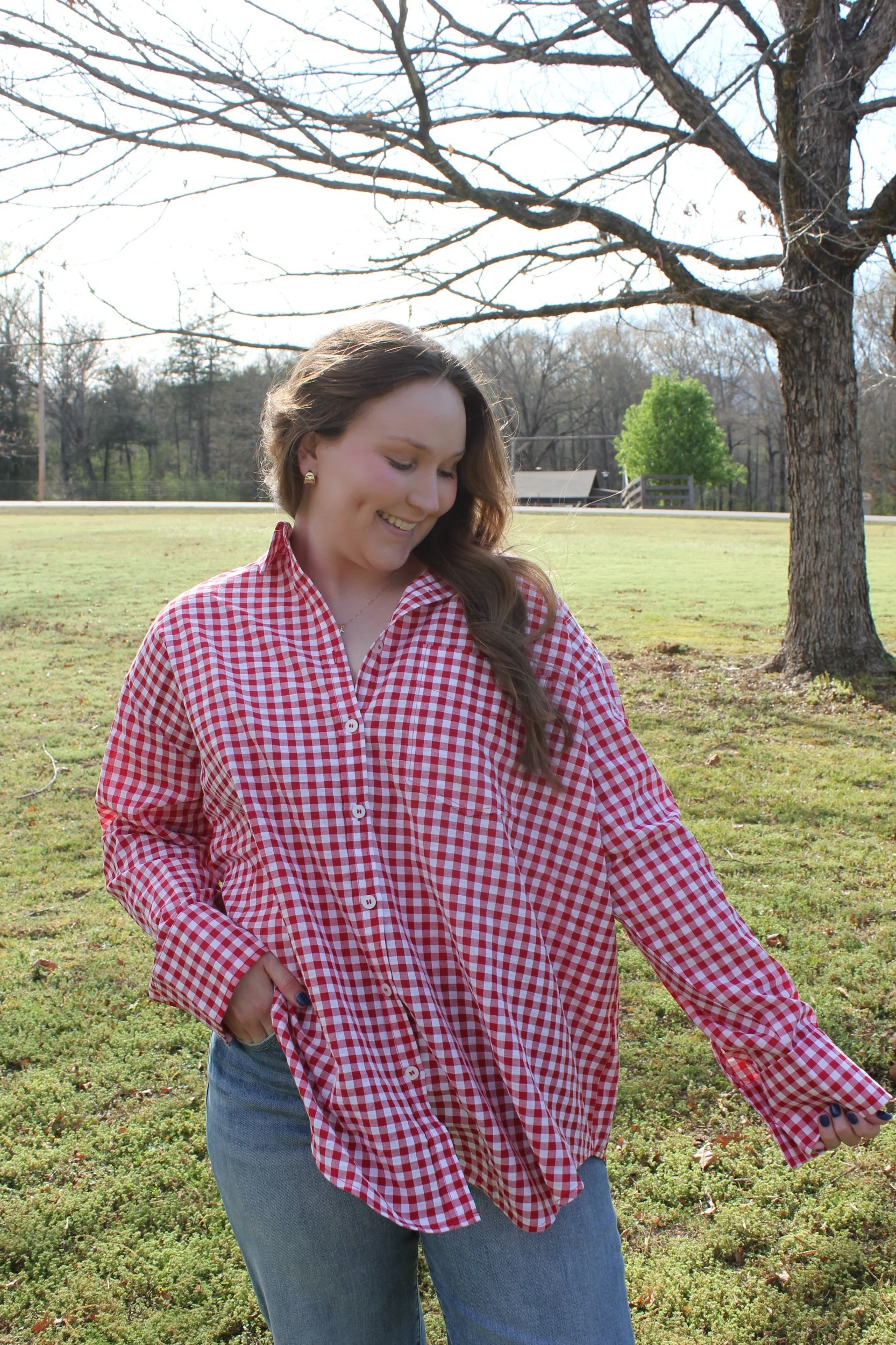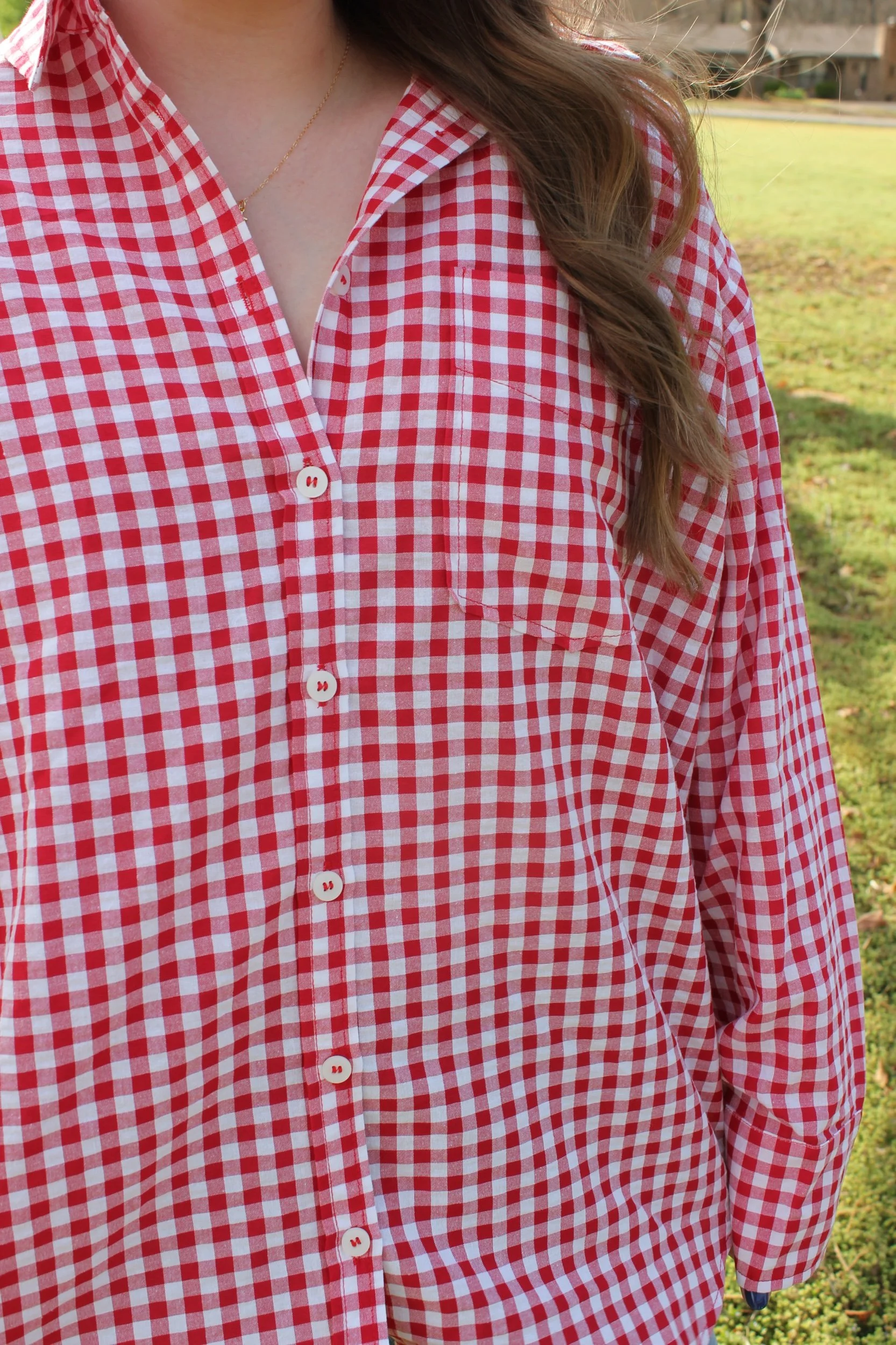 Shop › Gingham Button Down Shirt - Ruby Image 1 of 4 Image 2 of 4 Image 3 of 4 Image 4 of 4 Gingham Button Down Shirt - Ruby $38.00 • Oversized fit• Size down/stick with true size• Maddie is 5’6 wearing the medium Size: Small Medium Large Get notified by email when this product is in stock. Add To Cart Added! • Oversized fit• Size down/stick with true size• Maddie is 5’6 wearing the medium
